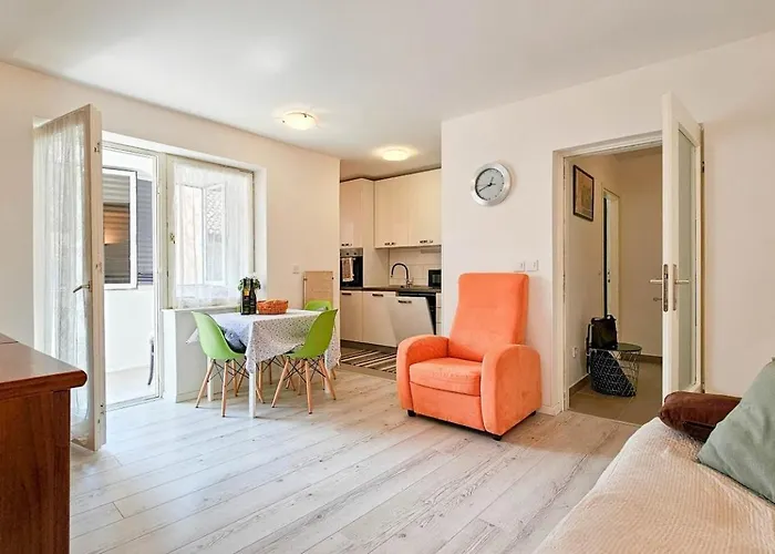 Dla wygody Gości obiekt noclegowy obejmuje pełnowymiarową kuchnię z kuchenką mikrofalową, lodówką i przyborami kuchennymi. Obiekt ulokowany prawie 5 min spacerem od najbliższej restauracji serwującej dania kuchni chorwackiej. 1-pokojowy apartament położony jest stosunkowo w małej odległości od dworca autobusowego Novigrad.
